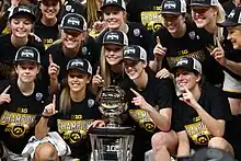From 2015 to 2019, Megan Gustafson has played for Coach Bluder and the women's basketball program at Iowa. Gustafson was named the 2019 National Player of the year, after averaging a double-double of 27.8 points and 13.4 rebounds on 69.9% shooting. The 2018–19 Iowa Hawkeyes women's basketball team had a 29-7 regular season record, winning the Big Ten Conference tournament championship and advancing to the Elite Eight of the 2019 NCAA Division I women's basketball tournament.[6][7] The 2021–22 Iowa Hawkeyes women's basketball team finished the season 24–8 sharing the regular season title with Ohio State. They also won the 2022 Big Ten women's basketball tournament, defeating Indiana 74–67 in the Big Ten Championship. Caitlin Clark was named the Most Outstanding Player for the Tournament. Iowa repeated as Big Ten champions the following year, with Clark being named the most outstanding player. Later that season, they advanced to the Final Four for the first time in three decades.[8][9]