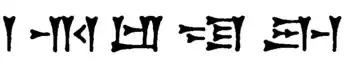 Another sign is similar in this group to cuneiform ur, but the center is replaced by 2 stokes, one angled down, and the other a wedge (at extreme right vertical), and is the gáb sign. In the Amarna letters it is often used for English "all", or "all (of us)", Akkadian language, gabbu.[3] (Amarna letters EA 153, EA 287, EA 288, and EA 267)