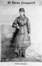 Irene Morales Infante (1 April 1865 – 25 August 1890) was a Chilean soldier who served in the War of the Pacific. She was born in a barrio of Santiago, and lived in poverty throughout her life, working as a seamstress from an early age. When the War of the Pacific began she was only 13 years old, and had been orphaned and twice widowed. Her second husband was executed by the Bolivian military for killing a soldier.