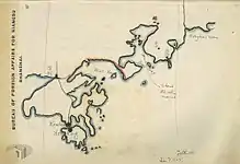 When the two submarines arrived they were off Mendoza Island (now Shenggao Island) at the entrance of the bay. The two then split up. L4 went to patrol around the entrance of the bay and Halahan ordered L5 to patrol within. Bias Bay is surrounded by rocks and that night there was a fleet of fishing junks sheltering inside and constantly moving around the anchorage. Both the rocks and the junks made it difficult for the British to monitor the area without being detected, though they succeeded in doing so, and on the morning of 20 October they encountered Irene steaming off Cake Island. She had been taken over by at least eighteen pirates armed with automatic pistols. It was still dark so L4 was surface cruising with one crew at the 4-inch (102 mm) gun and another at the vessel's searchlight. Lieutenant Halahan knew that torpedoes were not helpful in recapturing a pirate-held ship but he did have a 4-inch deck gun. Then Irene was spotted so Halahan maneuvered his submarine into position for firing, and when the order was given, the search light was turned on and the gun crew fired a blank warning shot at the steamer. When the shot was ignored a second, live round was fired and it blew a hole straight through the ship and killed a pirate who was standing on deck.[4]