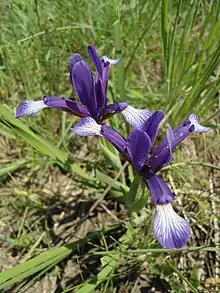 Iris sintenisii is a species in the genus Iris, it is also in the subgenus Limniris and in series Spuriae, with tall thin stems, violet-blue flowers and long grass-like leaves. It is a rhizomatous perennial plant, from grass meadows (including steppe) parts of Europe, Russia, and Turkey. It is cultivated as an ornamental plant in temperate regions.