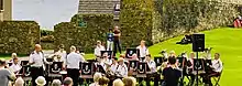 Band 2 Brigade (Irish: Banna den 2ú Briogáid) formerly known as the Army No. 4 Band, is another territorial band of the DFSM based in Athlone.[26][27] It was formed in 1936 and has been located at Custume Barracks in Athlone ever since. The band was previously known as the Band of the Western Command. The band services an area ranging from Westmeath to Donegal. It has had the distinction, unlike other military bands, to have served a six-month tour as part of a United Nations mission in Cyprus in 1965. During its tour, it performed for both the Greek and Turkish communities on the island. It was also the Irish military band to perform in the United Kingdom when it visited Birmingham, England. It has also abroad to perform in festivals and parades in countries such as France, Lebanon and Belgium.[28] The band is currently led by Captain John Carpenter.