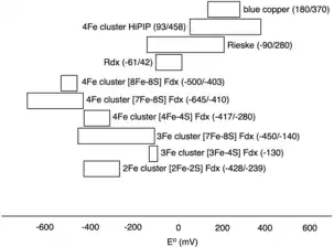 To serve their various biological roles, iron-sulfur proteins effect rapid electron transfers and span the whole range of physiological redox potentials from -600 mV to +460 mV.