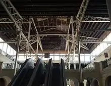 The building was bombed on 7 April 1942, during World War II, destroying one third of the building. The damaged parts were repaired soon afterwards, but were not rebuilt to the original plan and the roof's symmetry was lost. By 1966, the market no longer met hygiene standards so it was overhauled. In 1970, two new floors were built and a pair of escalators were installed.[10] The market thrived for a few more years, before it began to decline in the mid-1970s.[8]