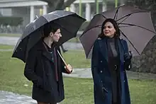 A dark storm cloud circulates around Seattle, and Lucy tells Regina that Facilier saved Henry from the curse, but it failed to ignite True Love's Kiss between him and Jacinda. The two are startled by Gothel, who offers Regina a chance to join her Coven and save her family as she tells them that Henry has lost his powers in believing. Regina turns her down. Later on, Weaver makes amends with Regina by offering a special potion to help Regina save Henry. He tells Regina he's doing this because of Belle. But when she gives Henry the potion at his apartment, it doesn't work. Regina and Lucy decide to use another approach, by using the "Once Upon a Time" book, but that doesn't work either. At this point, Henry still doesn't believe and wants Regina and Lucy to stop this nonsense. After Lucy leaves, an upset Regina keeps trying to make Henry believe. When he asks where are the heroes in the book such as Snow, Charming, and Emma, Regina reveals that the curse Gothel created sent everyone back in time and that their past selves have yet to leave Storybrooke (thus revealing that the Storybrooke flashbacks and the Hyperion Heights action are actually occurring alongside each other). After they return to Henry's apartment, and after Lucy tells him she has given up on him, Henry discovers the adoption papers with a phone number. He calls the number and speaks to his younger self, which causes Henry's memories to come back. Lucy is excited that Henry's back, and they go to rescue Regina.