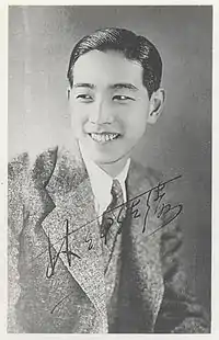 Isao Hayashi (林伊佐緒, Hayashi Isao, May 11, 1912 – September 29, 1995) was a Japanese popular music and military music singer and composer. He took part in the Japan's famous year-end show Kōhaku Uta Gassen eleven times.[1] One of well-known songs composed by him is the military song "Shussei Heishi o Okuru Uta" (出征兵士を送る歌, "Song for Giving Warriors a Send-off"), which propaganda vehicles of uyoku dantai have aired in Japan.[2]