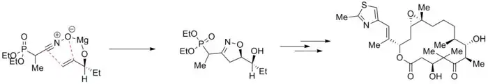 2-Isoxazolines are generally produced by the 1,3-dipolar cycloaddition of nitrile oxides with alkenes.[2] This has been applied in a diastereoselective manner in the synthesis of epothilones.[3]