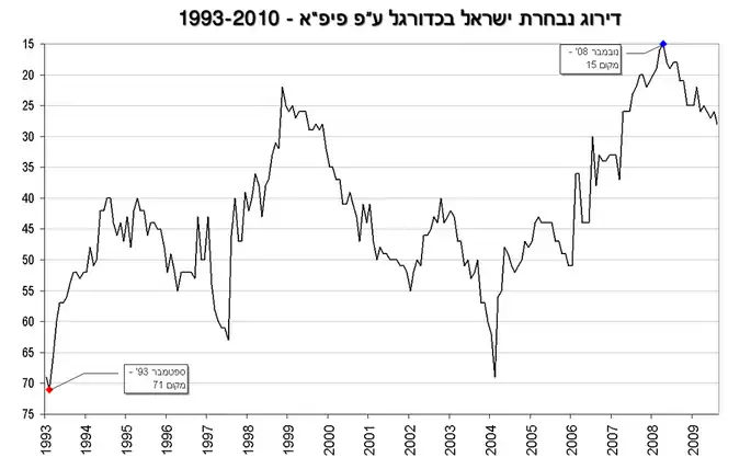 The following is a chart of yearly averages of Israel's FIFA World Ranking.[42]
