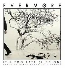 "It's Too Late" is the lead single by rock band, Evermore, taken from their debut album Dreams (September 2004). The track was written by the group's three New Zealand-raised brothers: Dann (backing vocals, drums), Jon (lead vocals, lead guitar), and Peter Hume (backing vocals, piano, keyboards, bass guitar). It was produced by John Alagía and released on 2 August 2004, which reached No. 16 on the ARIA Singles Chart in their adopted country of Australia. The song features on The OC Mix 2 soundtrack as a bonus Australian release only track. It also features on the Australian and New Zealand editions of SingStar Pop. In Australia, the song was listed at No. 14 on Triple J's Hottest 100 of 2004.