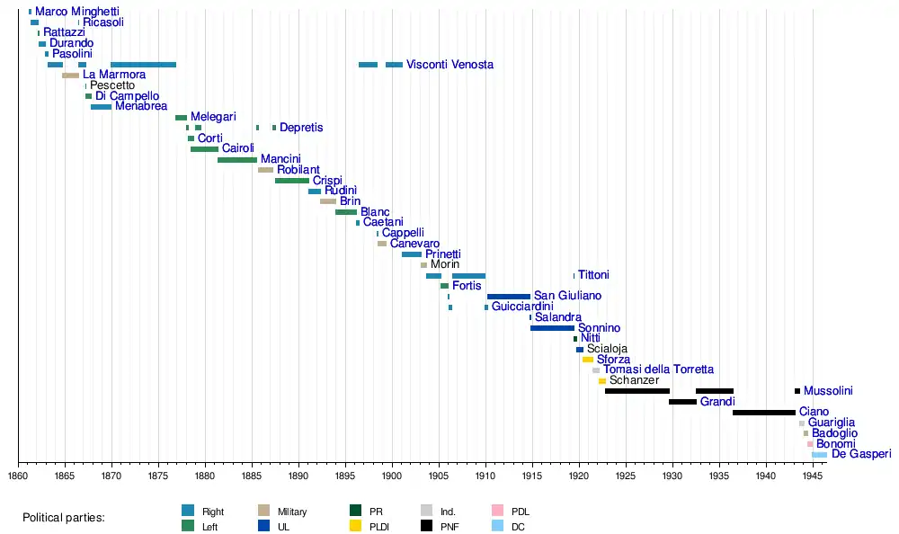 24 March 1863 | 28 September 1864 | 1 year, 188 days | Historical Right | Minghetti I | |||