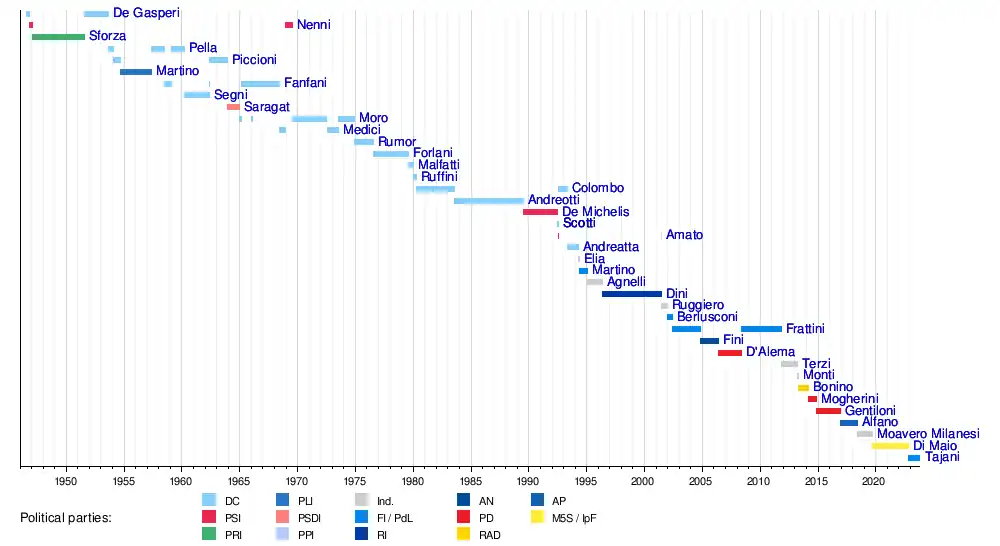 25 March 1960 | 7 May 1962 | 2 years, 43 days | Christian Democracy | Tambroni Fanfani III·IV |