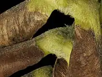 The cause of the irritation can be mechanical, such as products containing ground rose hips.[1][2] Another common ingredient is Mucuna pruriens,[3] a type of legume that produces seedpods coated with thousands of detachable spicules (needle-like hairs). The spicules contain an enzyme, mucunain, that causes severe itching, and they have been sold commercially as itching powder.[4] Mucuna pruriens has been used to test the efficacy of anti-itch drugs.[3]