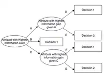 In decision tree learning, ID3 (Iterative Dichotomiser 3) is an algorithm invented by Ross Quinlan[1] used to generate a decision tree from a dataset. ID3 is the precursor to the C4.5 algorithm, and is typically used in the machine learning and natural language processing domain