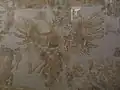 The original area of the banner was 6 m2 (65 sq ft). It was made of white and yellow silk damasks and painted and gilded on both sides.