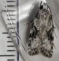 The adult moth has a wingspan of 15.5–21 mm for males and 17–25 mm for females.[5] Adults are on wing from October to February.[5]