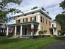 J. Franklin Peck House is a historic home located at Lima in Livingston County, New York. It was built in 1853 and is a 2+1⁄2-story, three-bay, Greek Revival–style frame dwelling.[2] The main floor consists of a center hallway with four rooms--a formal parlor, a library, a large dining room, and a small parlor. A modern kitchen is located in the back of the first floor. The second story contains four bedrooms in the main house and three additional rooms in the back. The house has ten separate fireplaces, plaster crown moldings and ceiling moldings, and pocket doors.