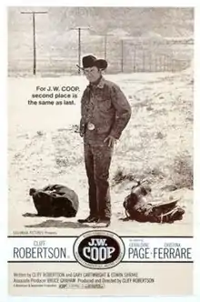 J. W. Coop is a 1972 American Western film set in the world of the modern American rodeo circuit. It stars and was directed by Cliff Robertson who also co-produced and co-scripted the film.[2] Featuring footage from actual rodeo events, it was made with the cooperation of the Rodeo Cowboys Association (which became the Professional Rodeo Cowboys Association in 1975).