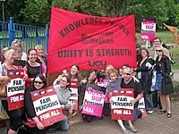 Teachers at New College Nottingham protesting against government pension plans.