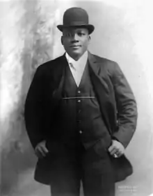 Johnson was born on March 31, 1878,[1] the third child of nine born to Henry and Tina Johnson, former slaves who worked service jobs as a janitor and a dishwasher.[12] His father had served as a civilian teamster of the Union's 38th Colored Infantry. He was described by his son as the "most perfect physical specimen that he had ever seen", although Henry had been left with an atrophied right leg from his service in the American Civil War.[13]