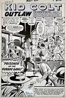 Keller began his long association with Kid Colt in Kid Colt, Outlaw #25 (March 1953). He stayed with the character for at least a dozen years in that signature title, as well as in such anthology series as All Western Winners, Two-Gun Western and Gunsmoke Western. In 1955, Keller also began freelancing for the low-budget Charlton Comics, based in Derby, Connecticut, drawing Western and war stories for titles including Billy the Kid, Cheyenne Kid, Battlefield Action, Fightin' Air Force, Fightin' Army, Fightin' Marines and Submarine Attack.[3][5]