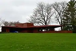 The Alice and Jack Lamberson House, also known as the Peter Maunu and Irmi Maunu-Kocian house, is a historic residence located in Oskaloosa, Iowa, United States. It is one of seven Frank Lloyd Wright-designed Usonian houses located in Iowa, and one of two that were constructed in Oskaloosa.[2] Both were completed in 1951. The Lamberson house is unique from the other Iowa Usonians for its extensive use of 60º and 120º angles. It features a low, sweeping pitched roof that makes the house look deceptively large, yet it is the second smallest of Iowa's Usonians.[2] It was listed on the National Register of Historic Places in 1988.[1]