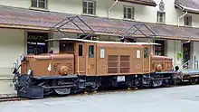 The ten-coupled Italian E550 of 1908 had paired motors, each with a jackshaft. A triangular rod was carried between these, rotating in synchrony and so always horizontal. This carried a sliding crankpin journal for the centre axle, and bearings for the long coupling rods to the unevenly-spaced pairs of drivers ahead and behind.[25] A similar arrangement was used for the Swiss Bern–Lötschberg–Simplon railway Be 5/7 1-E-1 of 1912.[26]