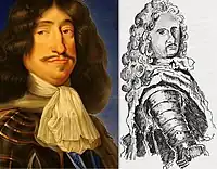 De Petersen's ancestors lived in Rendsburg, he himself is regarded as the ancestor of the imperial barons De Petersen who emigrated to the Netherlands. He was born under the name Petersen[2] as son of unknown parents.[1] After his tailoring apprenticeship, Petersen came into contact with Frederik Ahlefeldt, the later Grand Chancellor, whom he accompanied as a valet on his travels through Europe in 1647–53.[1] In May 1654, during the court stay in Flensburg, Ahlefeldt was appointed chief valet, and it was apparently he who employed Petersen as a valet to the king Frederick III of Denmark and Norway before May 1655. In 1658, during the Swedish-Danish War, he was in Lübeck to issue one loan for the king and the other one for privateers. At the beginning of his career Petersen officially acted as the king's senior valet and secret valet,[2] later as the king's chamberlain.[4][5][6] After the coup d'état in 1660, he was described by a foreign envoy as the king's "darling", but he was particularly in the favor of Queen Sophie Amalie, to whom he was attached as "secret chamberlain".[1] Politically, he played a major role in those years within the Queen's party, which included men like Hannibal Sehested.[1]