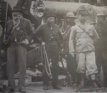 On the 26th of November, General Snyman requisitioned 700 rifles and ammunition for Field Cornet J.H. Visser, who with a fighting force of 400 burghers, lay siege to the administrative settlement of Kuruman.[67] The siege ended with the surrender of the British garrison on New Year's Day. Twelve British officers and 120 police were captured, among them Captain Bates (Cape Police, formerly Captain British Bechuanaland Police under General Sir Frederick Carrington) and Captain Dennison (Intelligence Department).[68][69]