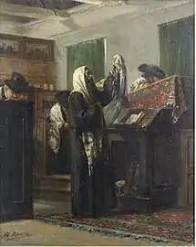 Jacques Émile Édouard Brandon (July 3, 1831 – May 20, 1897) was a French artist who is known especially for his paintings of Jewish themes. Most sources list his place of birth as Paris, although some say Bordeaux or Lisbon. He signed his paintings "Ed. Brandon," and his full name commonly is given as Jacques Émile Édouard Brandon, but also as Jacob Émile Édouard Péreira Brandon.