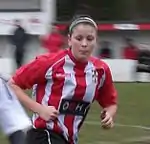 In October 2010 Radburn signed for Keynsham Town.[7] She was then revealed as part of Bristol Academy's FA WSL squad in March 2011.[8] Lorton-Radburn made her WSL debut in a 0–0 draw at Everton, but was ineligible for Bristol's FA Women's Cup final defeat to Arsenal after playing for Keynsham in an earlier round of the competition.[9] She was named in Bristol Academy's 2011–12 UEFA Women's Champions League squad in September 2011.[1] In March 2012 it was reported that Lorton-Radburn had rejoined Leicester City.[10]