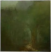 2. In 1998 a critic explained this transition:"Jake Berthot, long a master of abstraction, has moved to the country and started painting forests.... In a sense, Berthot begins, as he always has, with abstraction. He pencils a skeleton of grids and crosshatches over his canvas, a construction of lines that builds into something almost three-dimensional, like a blueprint of the universe.... Berthot's taste for abstraction hasn't left him. His fields of paint shift and move, full of questions and implications. The trees almost fight the colors around them, asserting their noble presences in great fogs of paint. Springing from their gridlike backgrounds, they trumpet their organic shapes, but don't deny their kinship to the abstract."[17]