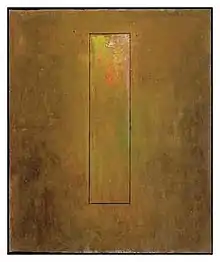 1. Regarding the painting's design he said: "I was concerned about getting to the middle of the canvas. That seemed to be the biggest problem in painting at the time, including my painting. I started thinking about it and decided to try putting some kind of form in the middle to just do the same things I'd been doing but reverse it. Rather than having the bars on the outside, I would create an internal situation; rather than having the void in the middle, I would move it out to the sides."[9]
