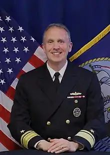 James A. Aiken Jr. (born 1967)[1] is a United States Navy rear admiral and surface warfare officer who serves as the 11th commander of the United States Naval Forces Southern Command and United States Fourth Fleet since September 3, 2021.[2] He previously served as the commander of Carrier Strike Group 3 from April 30, 2020 to August 2021,[3] with command tours as commodore of Destroyer Squadron 60 from December 13, 2013 to August 3, 2015, and commanding officer of the USS Chung-Hoon (DDG 93) from April 18, 2007 to October 15, 2008.[4][5] He was promoted to his present rank on April 1, 2021.[6]