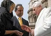 In 2002, on behalf of the U.S. State Department, Carville, and his wife, political consultant Mary Matalin, met with a group of 55 Arab women political leaders during the 2002 United States midterm elections. The programming, "Women as Political Leaders" International Visitor (IV) Program", was the first program implemented under the auspices of the Middle East Partnership Initiative, a collection of 40 programs headed by then deputy assistant secretary for Near East Affairs Liz Cheney.[82] In addition to events with Carville and Matalin, the group met with congressional, state and local campaign staff, and observed campaign work during their visits to Concord, New Hampshire, Dallas, Texas, Detroit, Michigan, Toledo, Ohio, Raleigh, North Carolina, and Tallahassee and Tampa, Florida.[83]
