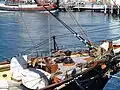 Part of the inspiration for preserving James Craig has been credited to Karl Kortum, then director of the San Francisco Maritime Museum who had also been involved in encouraging Australians to preserve the similar sized barque Polly Woodside in Melbourne in 1962.[5][6] Restoration of James Craig began in 1972, when volunteers from the Lady Hopetoun and Port Jackson Marine Steam Museum (now the Sydney Heritage Fleet) refloated her and towed her to Hobart for initial repairs. Brought back to Sydney under tow in 1981, her hull was placed on a submersible pontoon to allow work on the hull restoration to proceed. Over the next twenty-five years, the vessel was restored. Much of the hull was replaced, being repaired by both paid craftspeople and volunteers. The ship was relaunched in 1997, and restoration work was completed in 2001.