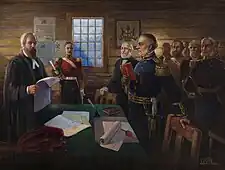 In December 1861, during the ongoing Trent Affair, Douglas argued for his London superiors to invade and conquer the Washington Territory as America was too busy in the East with the Civil War. He reasoned because there were few U.S. troops stationed in the territory since most other units stationed there were off to war in the East, the region's population was scattered, and there was little to no U.S. naval ships in the area. He also said the Royal Navy and Marines were powerful and could easily do the job, ending with a statement that "with Puget Sound, and the line of the Columbia River in our hands, we should hold the only navigable outlets of the country — command its trade, and soon compel it to submit to Her Majesty's Rule."[21]