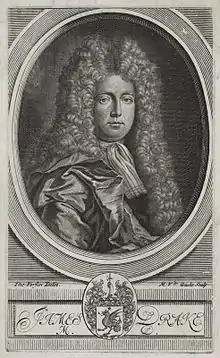 Drake escaped for the time, but was prosecuted the following spring for some passages in the Mercurius Politicus, a paper of which he was the author. John Hawles acted as his counsel, and a fellow physician John Radcliffe met some legal costs. He was convicted (14 February 1706) of a libel, but there had been a technical error and Drake was acquitted 6 November 1706. The government then brought a writ of error; but meanwhile Drake had died.[2][10][11] In 1706 Drake had also edited an edition of Leicester's Commonwealth, with preface.[12]