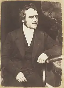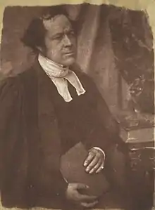 James Gibson was a Free church polemic, was born at Crieff, Perthshire, on 31 January 1799. He was the fourth son of Robert Gibson, who was a carrier from Crieff. His mother was Isabella Kemp.[4] He entered the university of Glasgow in his twelfth year. He graduated with an M.A. in 1817. Towards the close of his preparatory course he became tutor in a Lanarkshire family, and in 1820 was licensed to preach by the presbytery of Hamilton. He afterwards accepted a situation as tutor in a Roxburghshire family, near Jedburgh, where he remained more than three years. In 1825 he became travelling companion to Captain Elliot, a cousin to the Earl of Minto. They went to Portugal and resided a considerable time in Lisbon.[5][6]