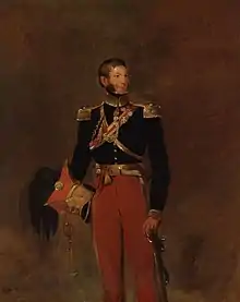 During the Peninsular War, Hay was present at the battles of Vittoria and the Nive for which he received the Army Gold Medal with one clasp.[2] He had his arm broken at the Battle of Salamanca.[3] In one engagement he led his regiment against the Lancers de Berg during which 70 enemy men and a squadron chief were captured.[1]
