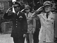 As commanding general of Continental Army Command (left), receiving welcoming honors at the Allied Command Atlantic headquarters of Admiral Ephraim P. Holmes (right), 1967.