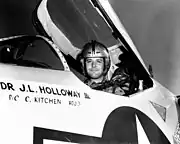 After World War II, Holloway became a naval aviator. He made two carrier tours to Korea, flying Grumman F9F-2 Panther jets on combat missions against the North Korean and Chinese Communists. He assumed command of VF-52 when his commanding officer was shot down. He was awarded the Distinguished Flying Cross and three Air Medals during the Korean War, and shared in a Navy Unit Commendation awarded to the aircraft carrier Valley Forge.