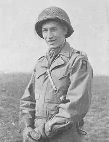 During Operation Cobra, the 957th suffered 35 casualties, including 13 dead when it was accidentally bombed by American aircraft. Collins was among the wounded, but remained at his post.[7] The 957th later participated in the Battle of Aachen,[8] the Battle of the Bulge,[9] and the Western Allied invasion of Germany.[10] For his services, Collins was awarded the Silver Star, Legion of Merit, Bronze Star Medal, Purple Heart and French Croix de Guerre with palm.[4]