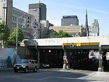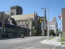 James Street is a Lower City arterial road in Hamilton, Ontario, Canada. It starts off at the base of the Niagara Escarpment from James Mountain Road, a mountain-access road in the city. It was one of many arterials in the central business district converted to one-way operation in 1956 when the city retained Wilbur Smith and Associates to develop a Traffic and Transportation Plan. Parts of it were restored to two-way operation in 2002. It extends north to the city's waterfront at the North End where it ends at Guise Street West right in front of the Harbour West Marina Complex and the Royal Hamilton Yacht Club.
