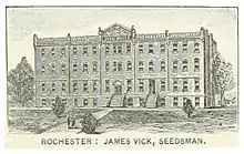James Vick (November 23, 1818 - 1882) was a printer, seed seller, and gardening catalog publisher in Rochester, New York.[1] His gardening magazine doubled as a seed catalogue and issues were beautifully illustrated and contained content and descriptions for gardening enthusiasts. From semi-annual to quarterly and eventually monthly, his Vick's Illustrated publication ran for decades.[2]