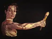 Representational figures and self-portraits are a substantial part of Serr’s work, explored through painting, drawing, and print mediums. About Face was a solo, forty-year survey of self-portraits and figurative work shown at the University of Wisconsin-Milwaukee Peck School of the Arts in 2011.[20] Summer Dances, exhibited by the Museum of Wisconsin Art in 2014, is a recent series representing dancers in motion.[21]