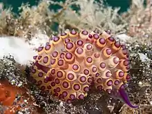 Janolus flavoanulatus is a sea slug species. The specific name is derived from Latin words flavus (“yellow”) and anulatus (“ringed”). These soft-bodied mollusks are known for their extraordinary colors and prominent forms. The first description of this species was reported by researcher Terry Gosliner, a leading researcher in the evolutionary history of nudibranchs.[1] Upon his conducted research in the Philippines, Gosliner named Janolus flavoanulatus for its yellow ring around its cerata.[2]