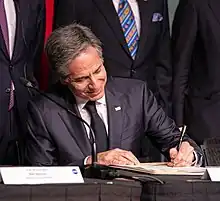 Vituperative anti-Japanese sentiment (especially on the West Coast) soured relations in the early 20th century.[37] President Theodore Roosevelt did not want to anger Japan by passing legislation to bar Japanese immigration to the U.S. as had been done for Chinese immigration. Instead there was an informal "Gentlemen's Agreement of 1907" between the foreign ministers Elihu Root and Japan's Tadasu Hayashi. The Agreement said Japan would stop emigration of Japanese laborers to the U.S. or Hawaii, and there would not be segregation in California. The agreements remained effect until 1924 when Congress forbade all immigration from Japan—a move that angered Japan.[38][39]