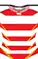 Japan traditionally plays with white and red hooped shirts (with white collar and cuffs) with a Sakura embroidered on the chest, paired with white shorts and white socks with red splashes. Between 2003 and 2011, the shirt was predominantly red with two white parallel hoops on the chest with white accents, sometimes with black or navy socks and shorts.