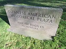 Designed by landscape architect Robert Murase, the plaza tells the important history of the Japanese in Oregon. It illuminates the challenges faced by Japanese immigrant and the incarnations of people with Japanese ancestors.[3] The plaza represents the poems of the experience of the Japanese immigrants and an important reminder of the U.S. Constitution and Bill of Rights.