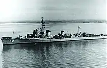 Yukikaze (雪風, "Snowy Wind") was a Kagerō-class destroyer in service with the Imperial Japanese Navy during World War II. She was the only member of her class to survive the war, and did so without suffering any major damage. She is famously known as a very fortunate ship, as she often survived numerous major naval encounters with little to no damage, while many of her allied ships would leave the battle crippled or sunk on multiple occasions. She did not accomplish anything of note in the battles of Java Sea, Midway, and Santa Cruz, but came to her own in various naval engagements in the Guadalcanal campaign, before seeing escorting missions during the Battle of the Philippine Sea, partaking in her last major surface engagement in the Battle of Leyte Gulf, and seeing her last major action of any sort escorting the battleship Yamato during the Battle of Okinawa. Following the war, the ship was transferred to the Republic of China Navy, where she was renamed Dan Yang (丹陽 DD-12) and served until 1966, before being scrapped in 1970.[1][2]